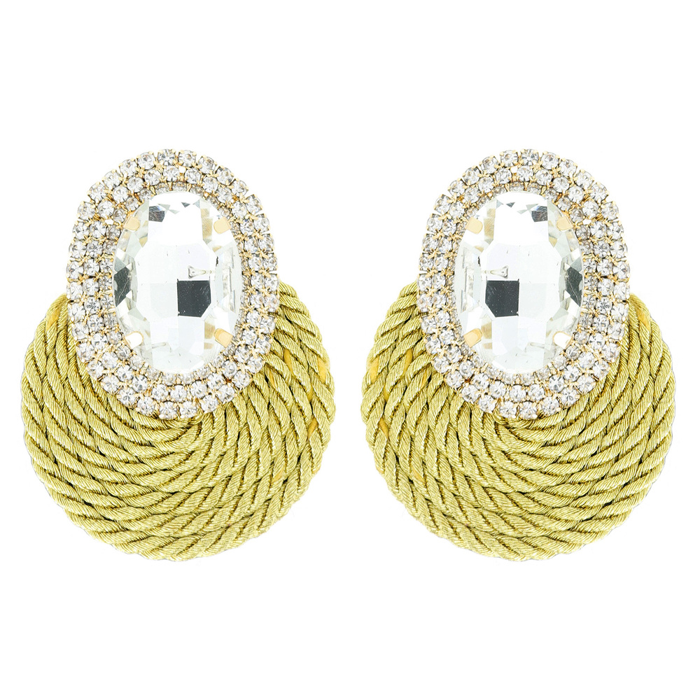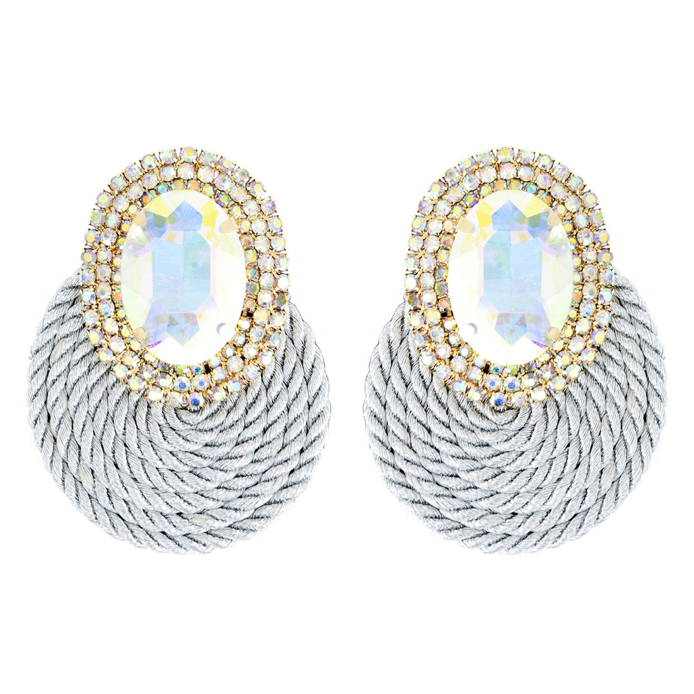 Fashion Oval Gem With Rhinestone Edge Post Earrings