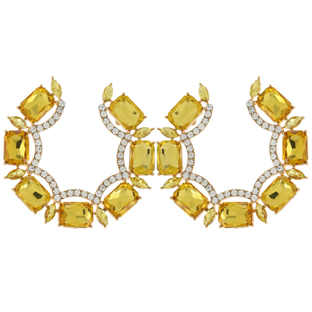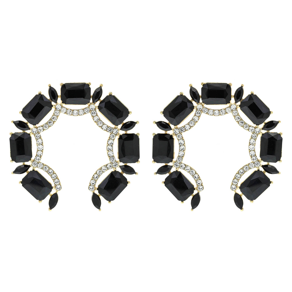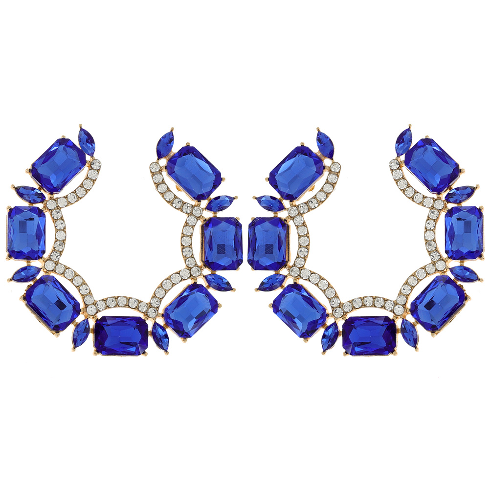 FASHION PARTY GEMSTONE AND RHINESTONE PAVE HALF HOOP EARRING