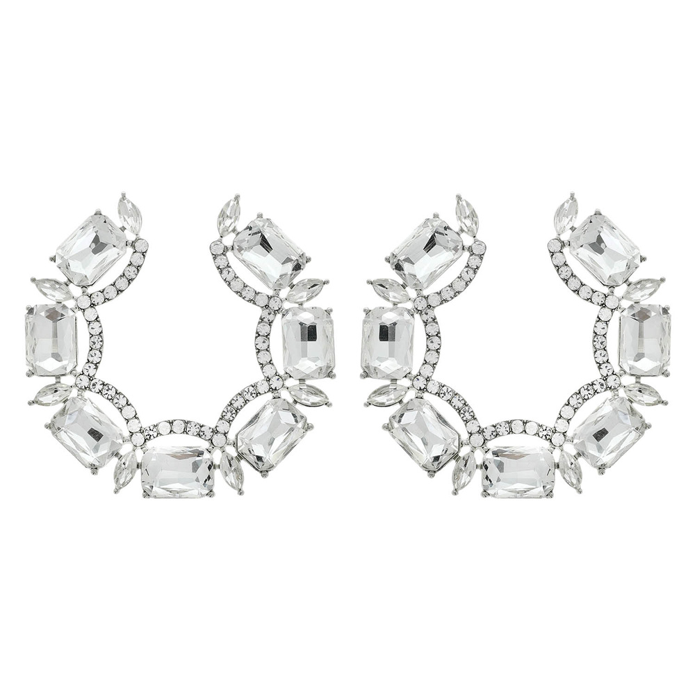 Fashion Party Gemstone And Rhinestone Pave Half Hoop Earring