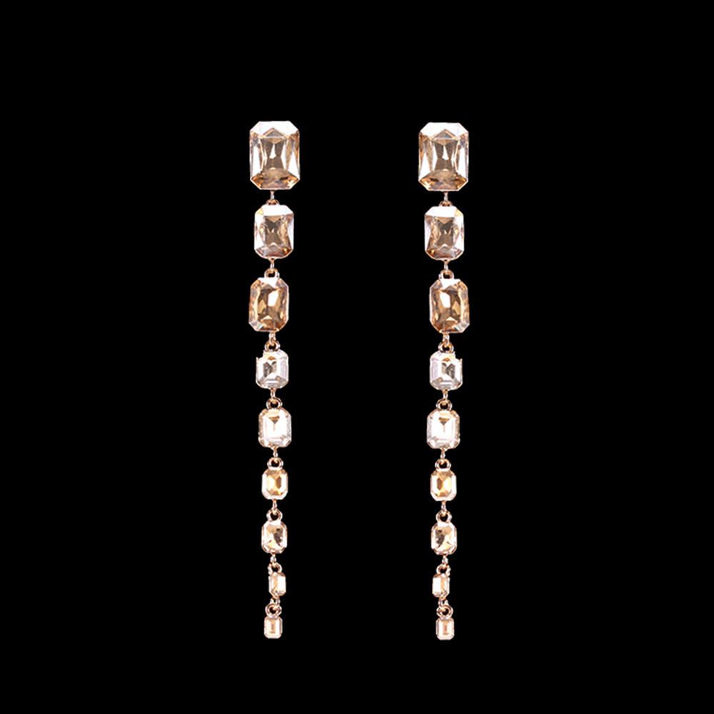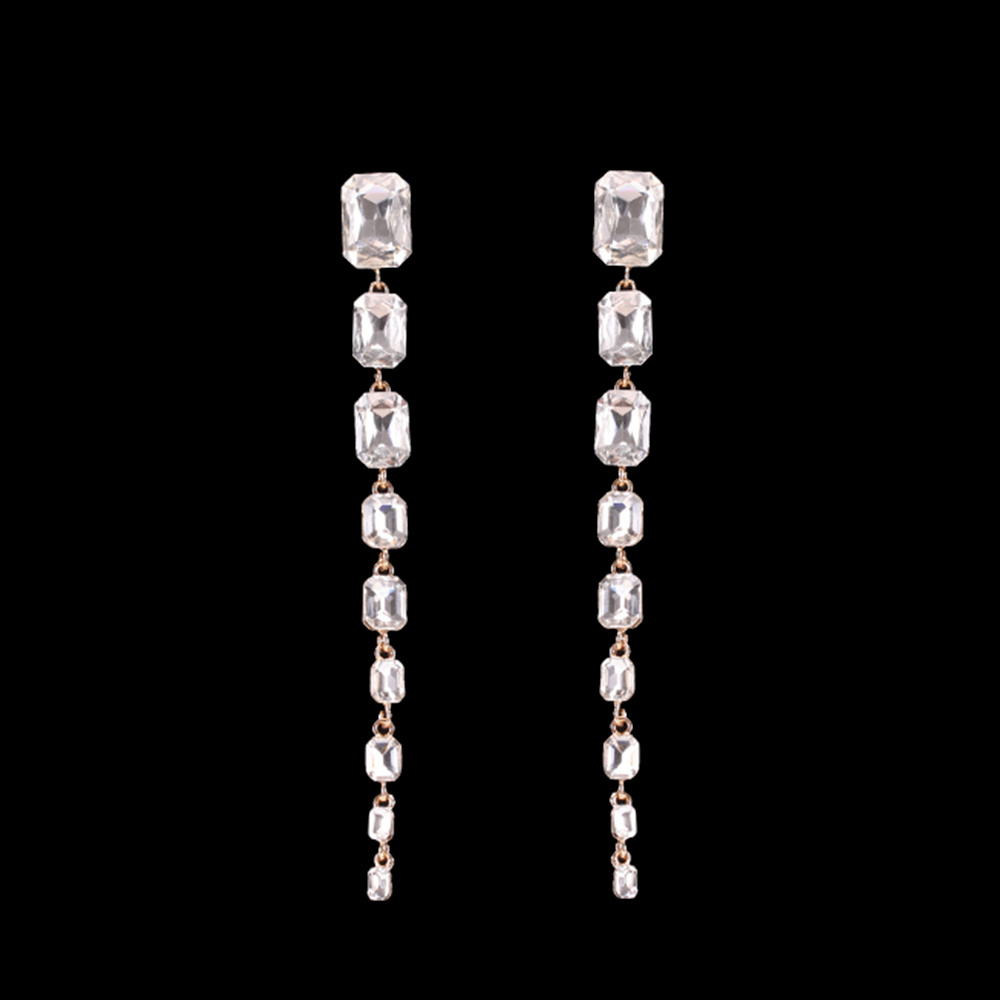 LONG SQUARE RHINESTONE EARRING W/GEMS