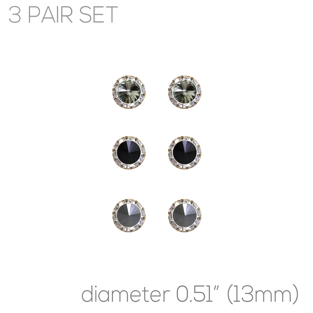 3-PACK SWAROVSKI CRYSTAL RHINESTONE PAVE ROUND ASSORTED BUTTON EARRING SET
