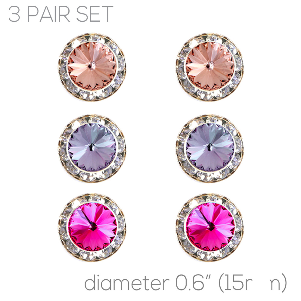 3-PACK MULTI-COLOR SWAROVSKI CRYSTAL RHINESTONE PAVE ROUND ASSORTED BUTTON EARRING SET