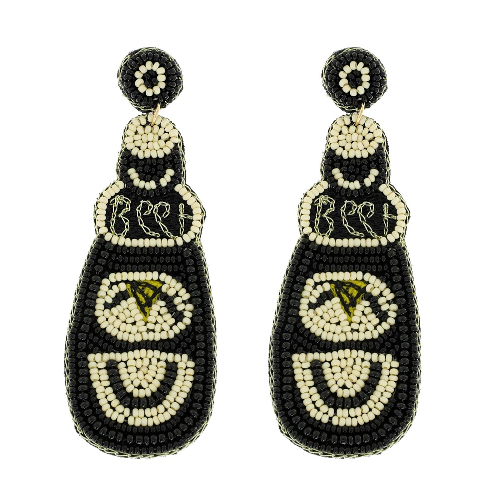 2-TIER STOUT BEER SEED BEAD HANDMADE BEADED EMBROIDERY DANGLE AND DROP EARRINGS