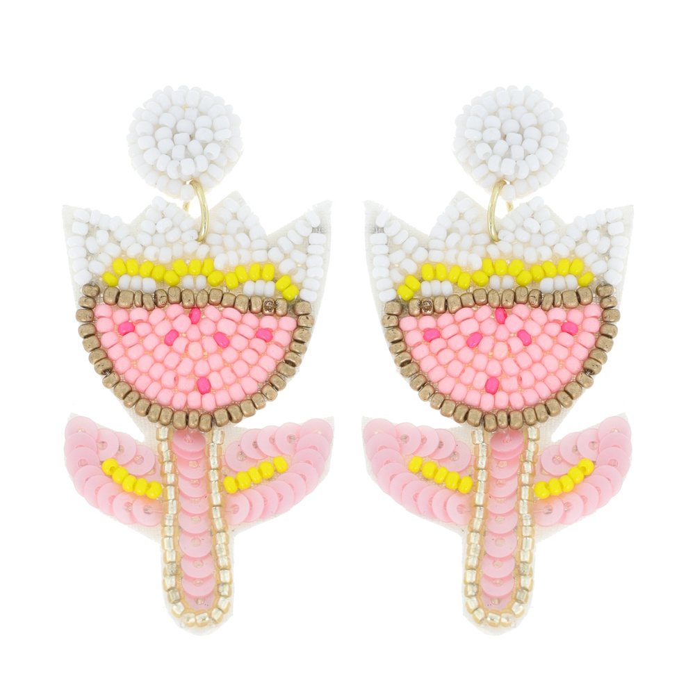 2-tier Tulip Beaded Embroidery Dangle And Drop Earrings