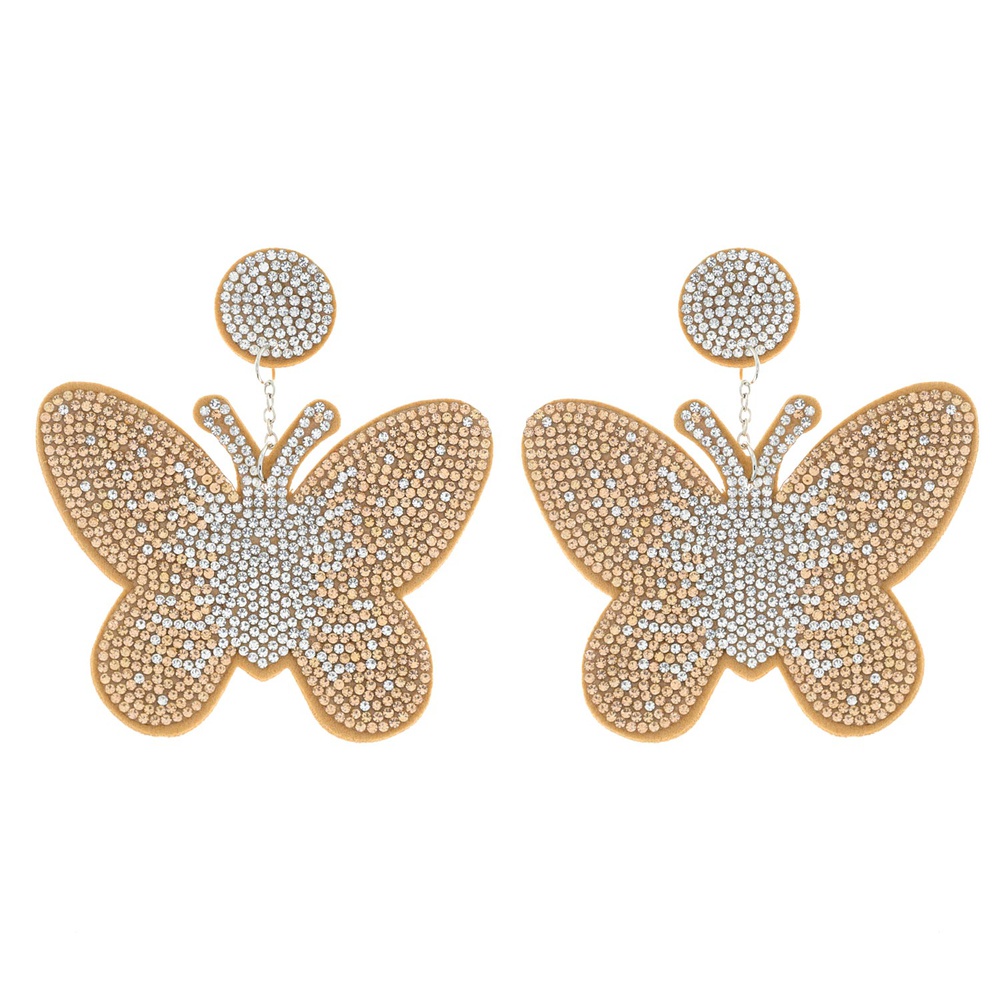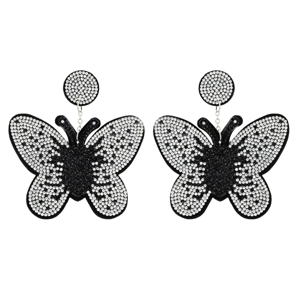 2-tier Two Tone Crystal Rhinestone Pave Butterfly Long Drop Earrings