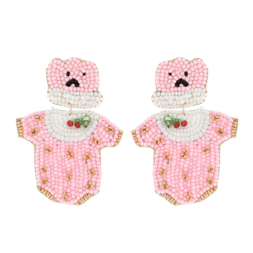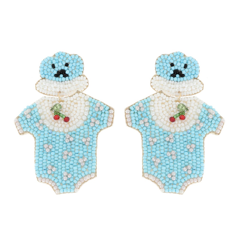2-TIER JEWELED GENDER REVEAL PARTY CHERRY ONESIE SET BEADED EMBROIDERY DANGLE AND DROP EARRINGS