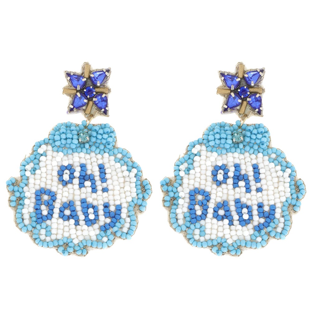"OH BABY" JEWELED GENDER REVEAL PARTY BABY SCALLOPED BIB BEADED EMBROIDERY DANGLE AND DROP EARRINGS