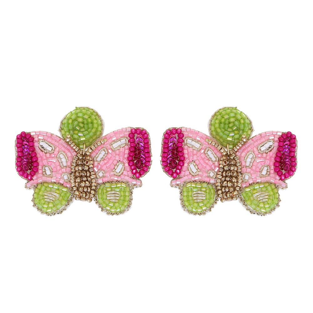 2-TIER BEAD MIX BUTTERFLY BEADED EMBROIDERY DANGLE AND DROP EARRINGS