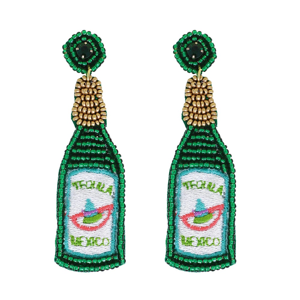 2-TIER JEWELED TEQUILA BOTTLE BEADED EMBROIDERY LONG DROP EARRINGS