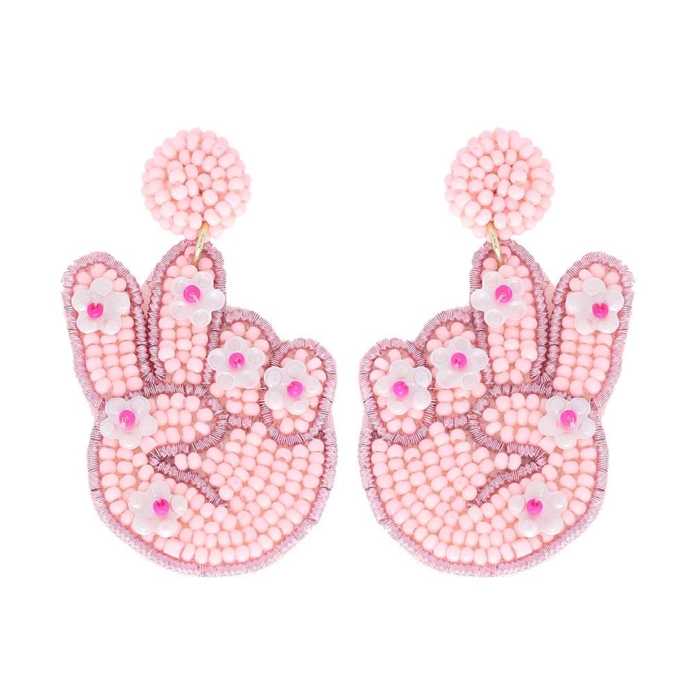 2-tier Pink Floral Peace Sign Beaded Embroidery Dangle And Drop Earrings