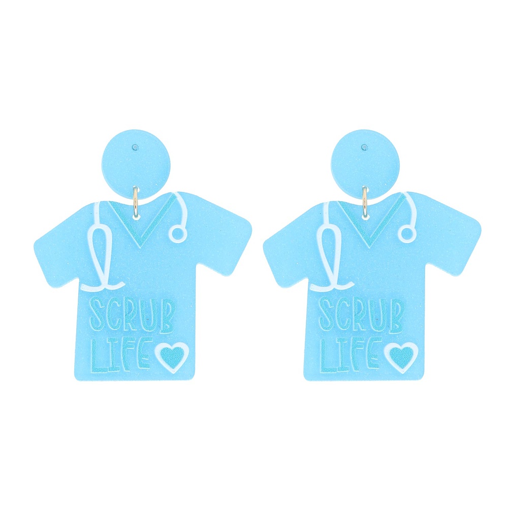 2-tier "scrub Life" Nurse Appreciation Acetate Scrub Top Earrings