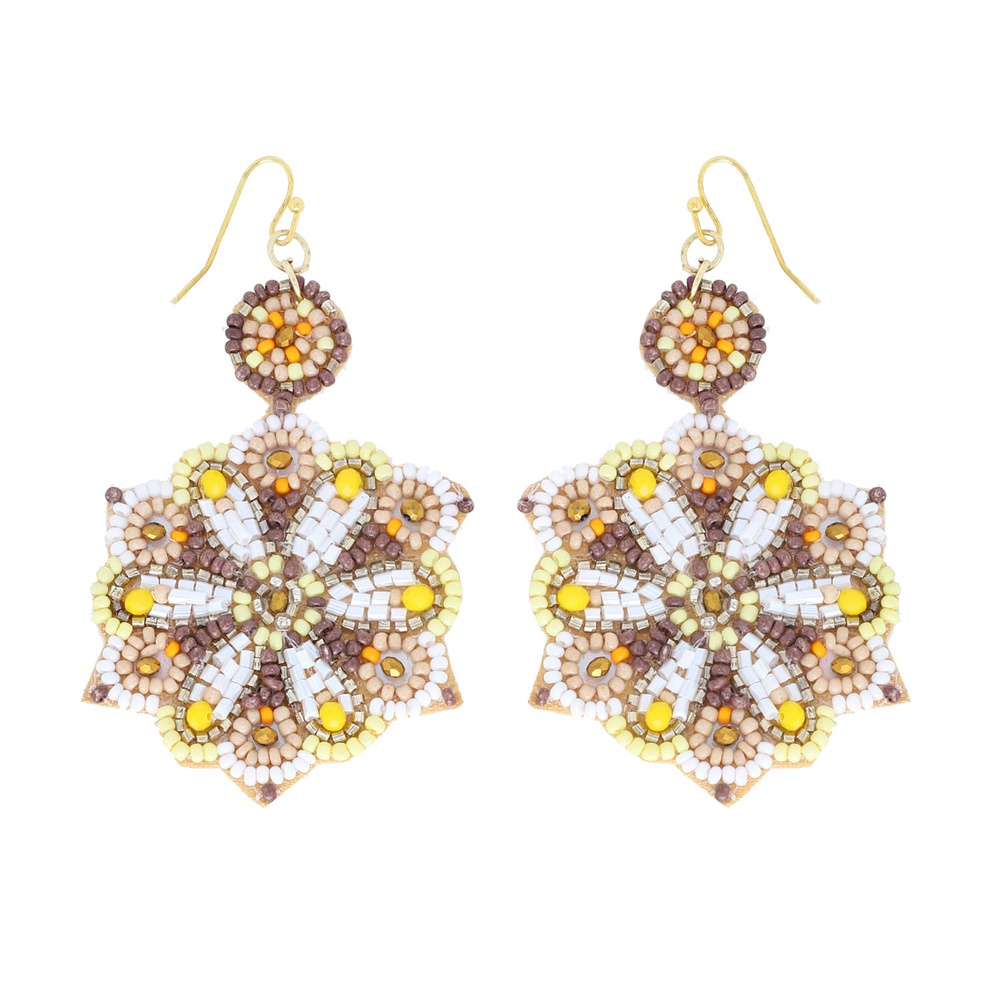 2-TIER FLORAL MULTICOLOR BEADED EMBROIDERY LONG DROP EARRINGS