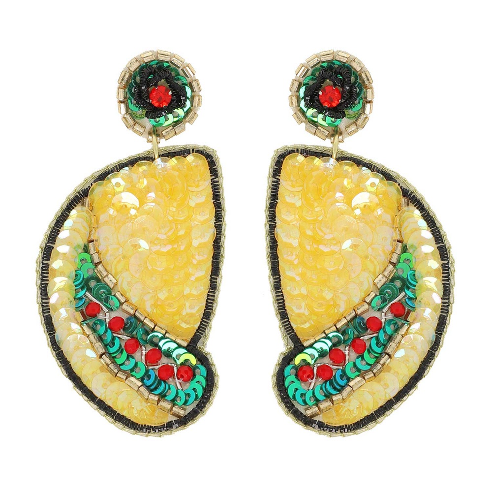 Cinco De Mayo Hard Shell Taco Beaded Earrings