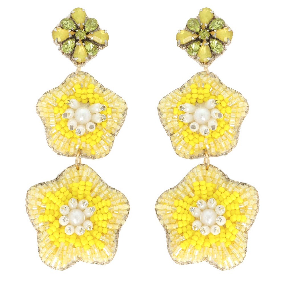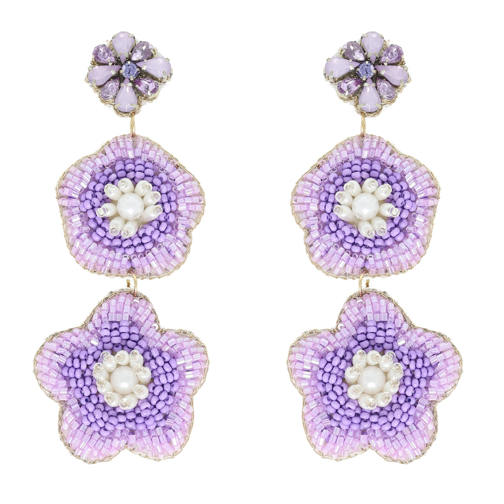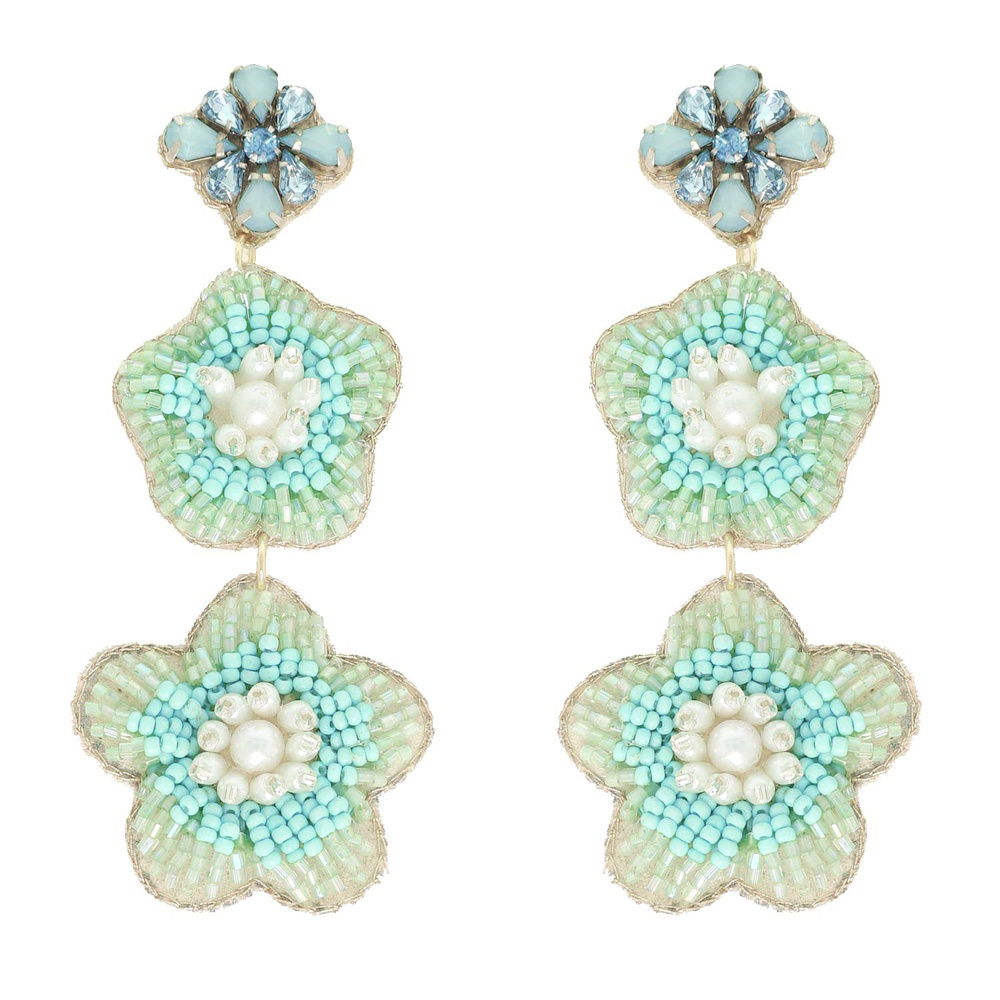 3-tier Jeweled Floral Bead Mix Drop Earrings