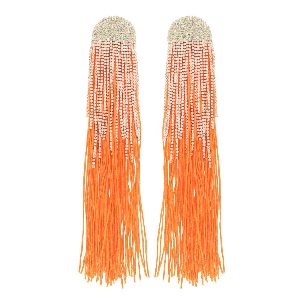 CRYSTAL RHINESTONE STRING TASSEL LONG DROP ARCH EARRINGS