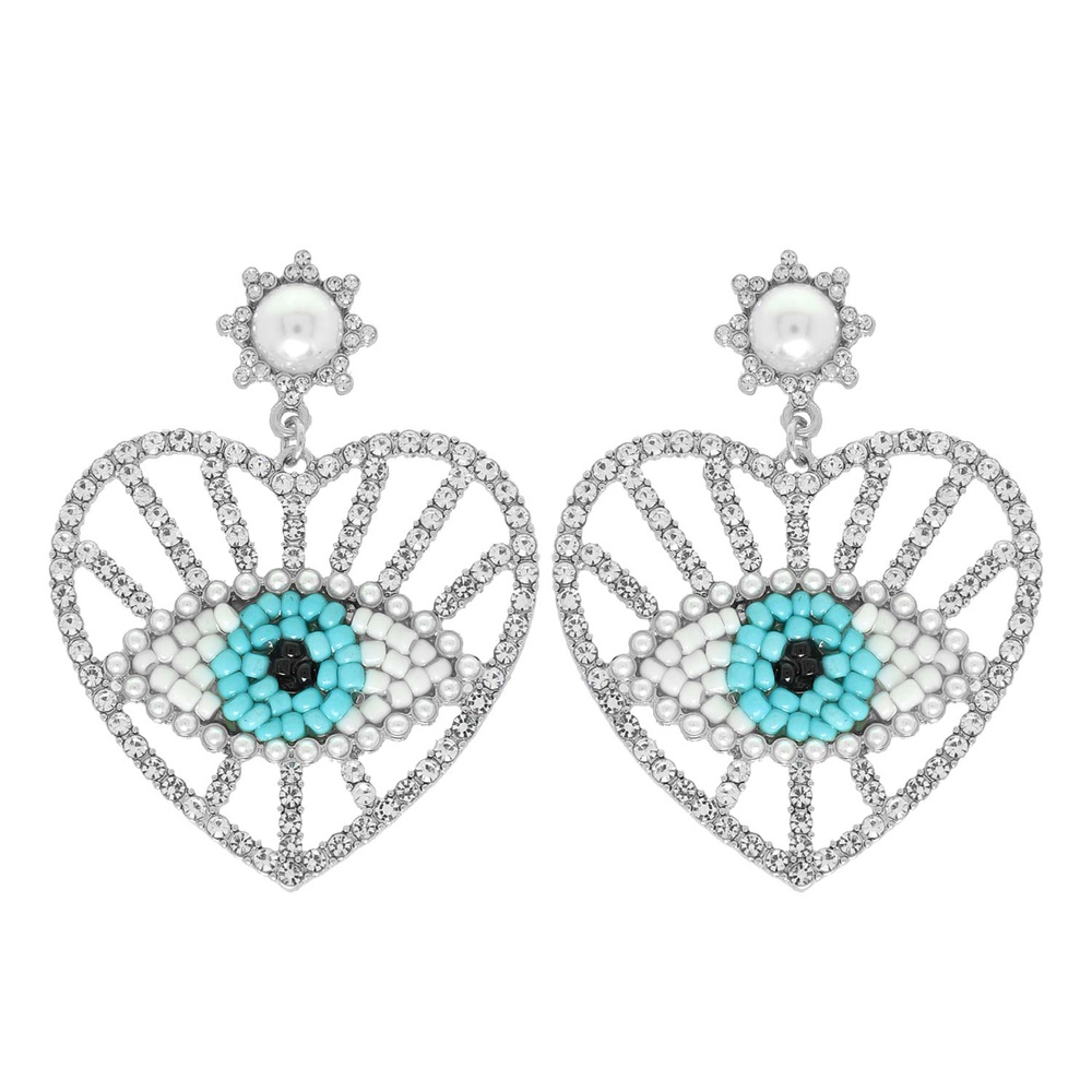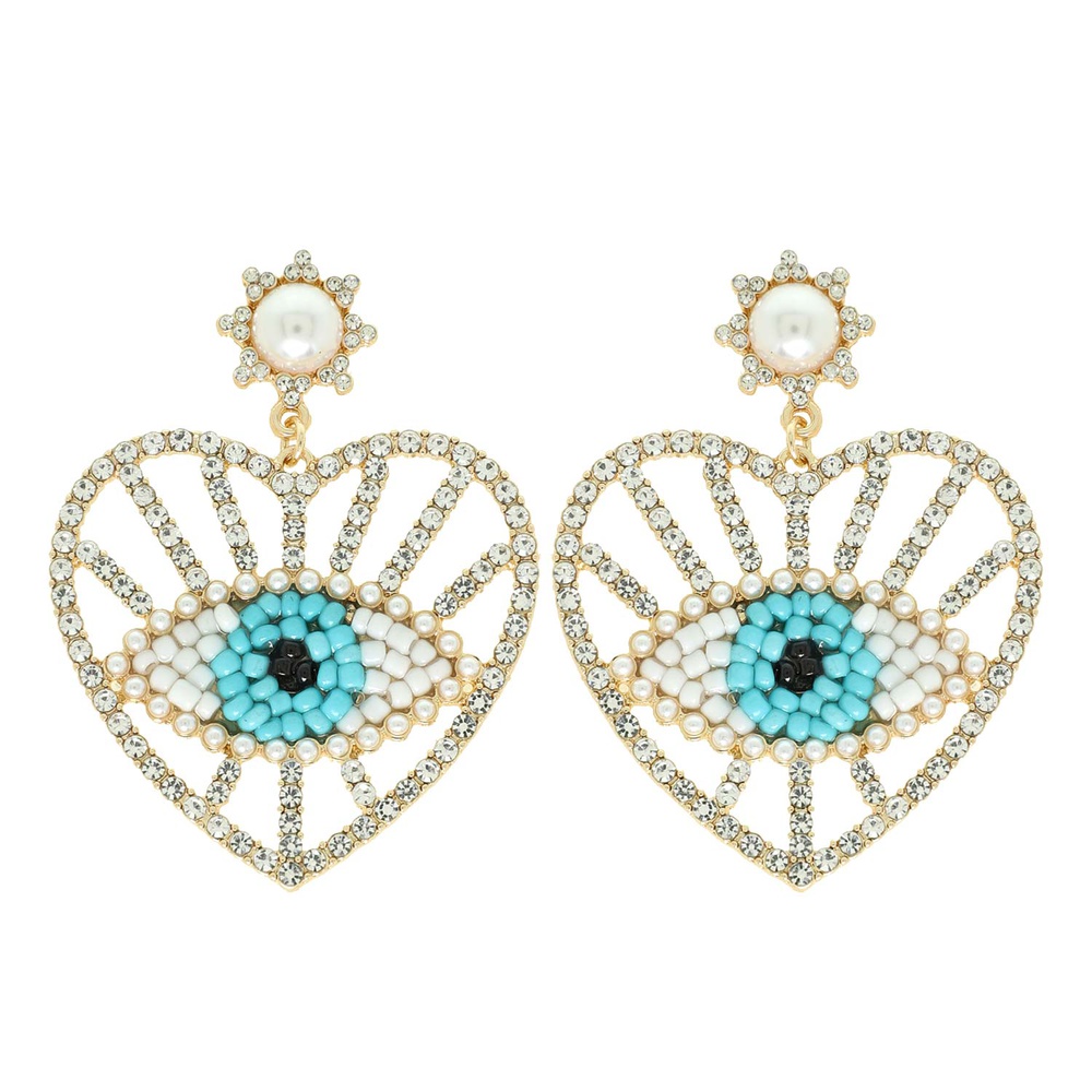 Good Vibes Evil Eye Heart Shaped Beaded Earring
