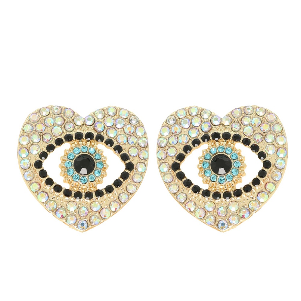 Good Vibes Evil Eye Heart Shaped Pave Earrings