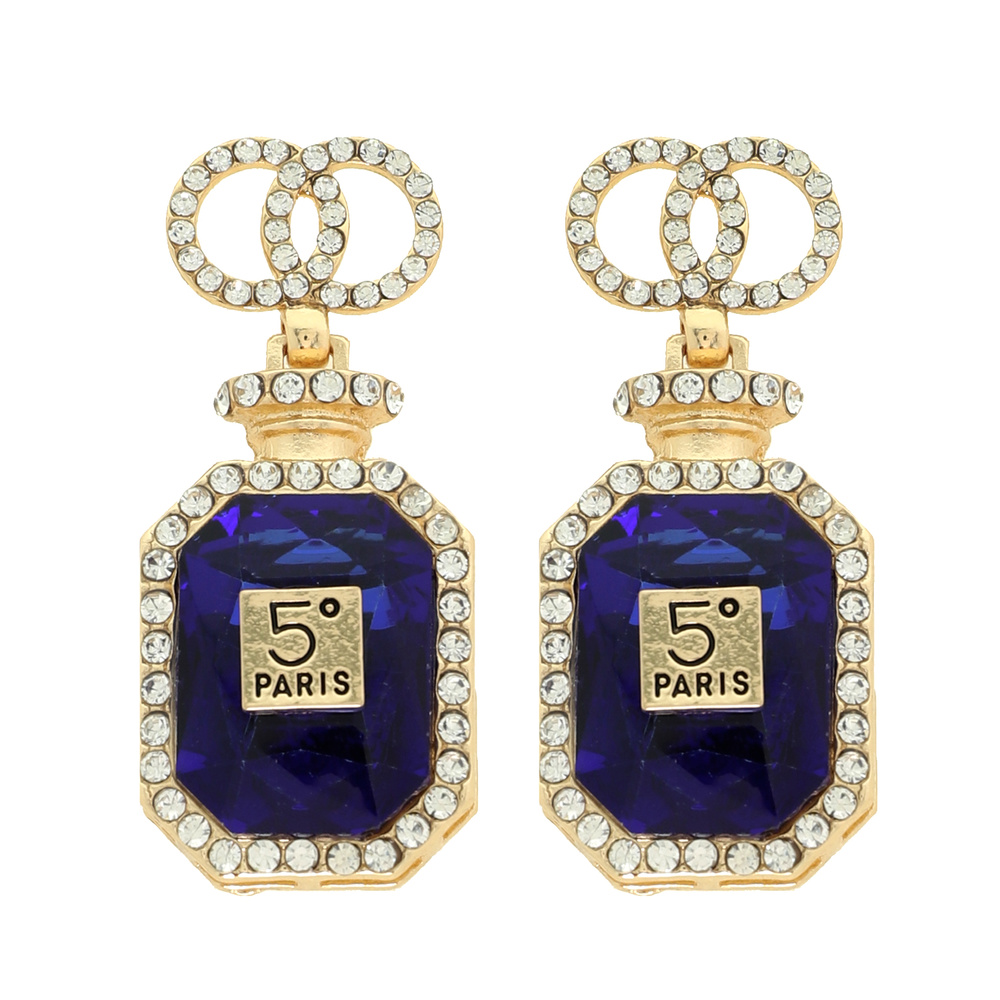 PARISIAN FASHIONISTA INTERLOCKING CIRCLE LINK CRYSTAL GEMSTONE PERFUME BOTTLE METAL DROP EARRINGS