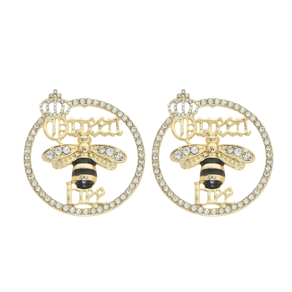 QUEEN BEE OPEN CIRCLE CRYSTAL RHINESTONE ENAMEL COATED DROP EARRINGS