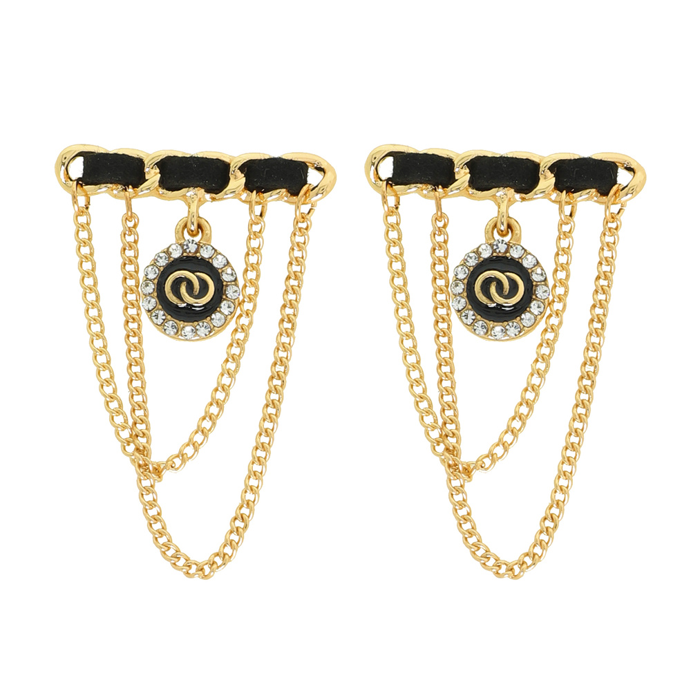 PARISIAN STYLE FASHIONISTA INTERLOCKING CIRCLE CRYSTAL PAVE WOVEN CHAIN LINK BAR CHAIN DROP EARRINGS