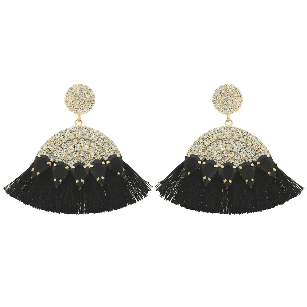 2-tier Bohemian Jeweled Arch Neon Tassel Earrings