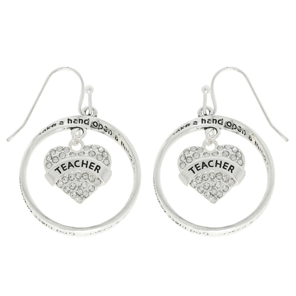 TEACHER'S BLESSING TEACHER APPRECIATION CRYSTAL RHINESTONE PAVE OPEN CIRCLE HEART CHARM DROP EARRINGS