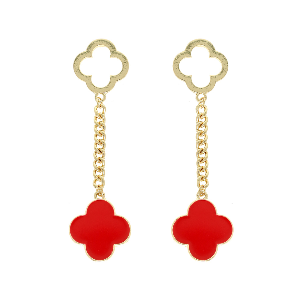 FOUR-LEAF CLOVER QUATREFOIL CHARM TASSEL STUD EARRINGS