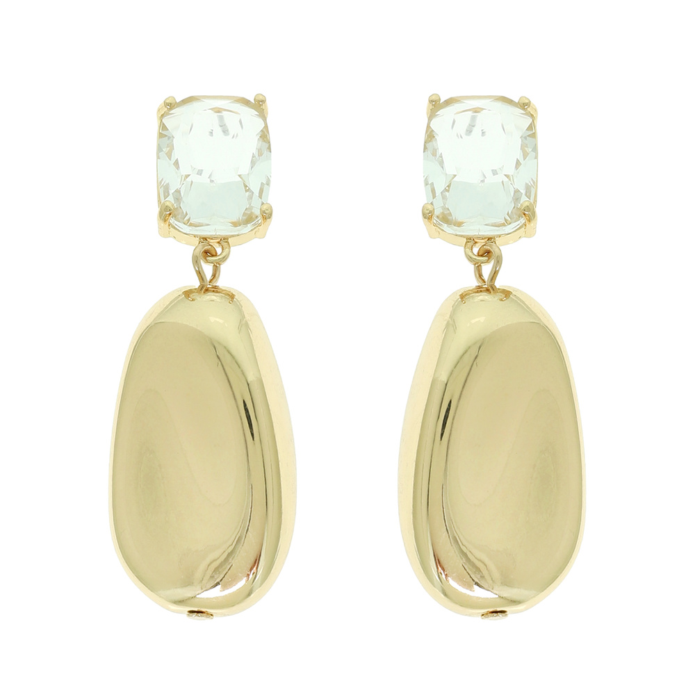 CRYSTAL GOLD-TONE OVAL CHARM DANGLE POST EARRINGS