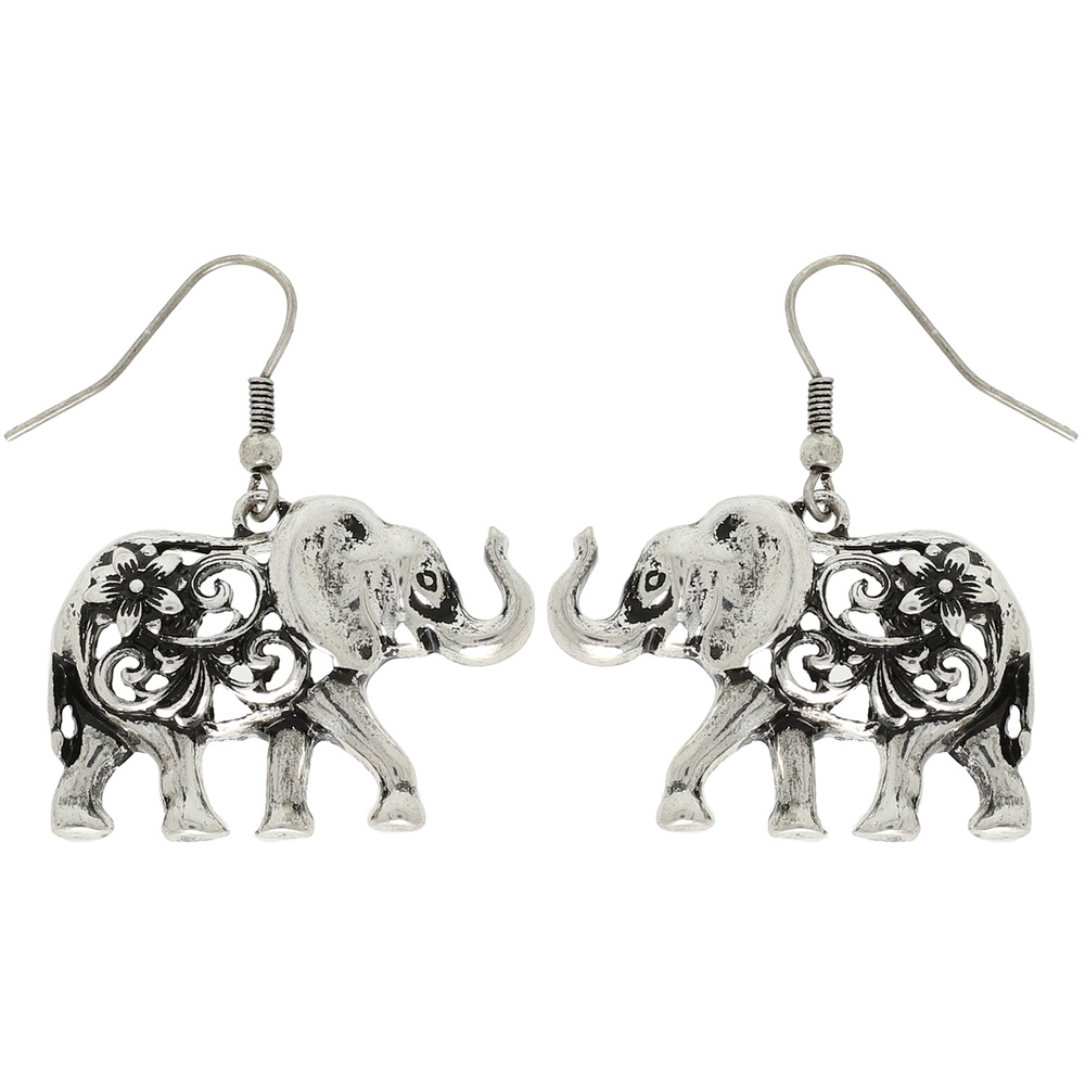 FLORAL FILIGREE PATTERNED ELEPHANT DANGLE EARRINGS