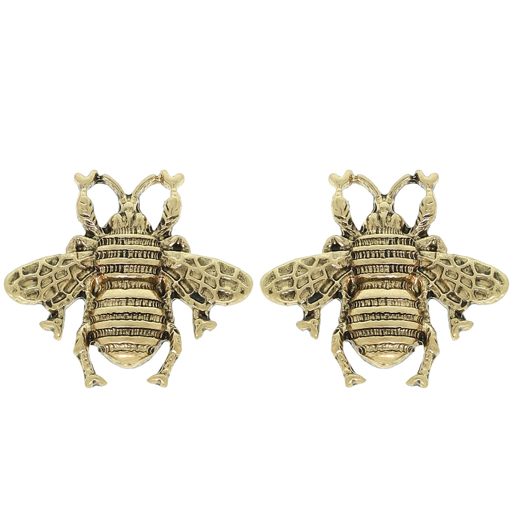 THREE-DIMENSIONAL BUMBLE BEE POST EARRINGS IN GOLD-TONE METAL