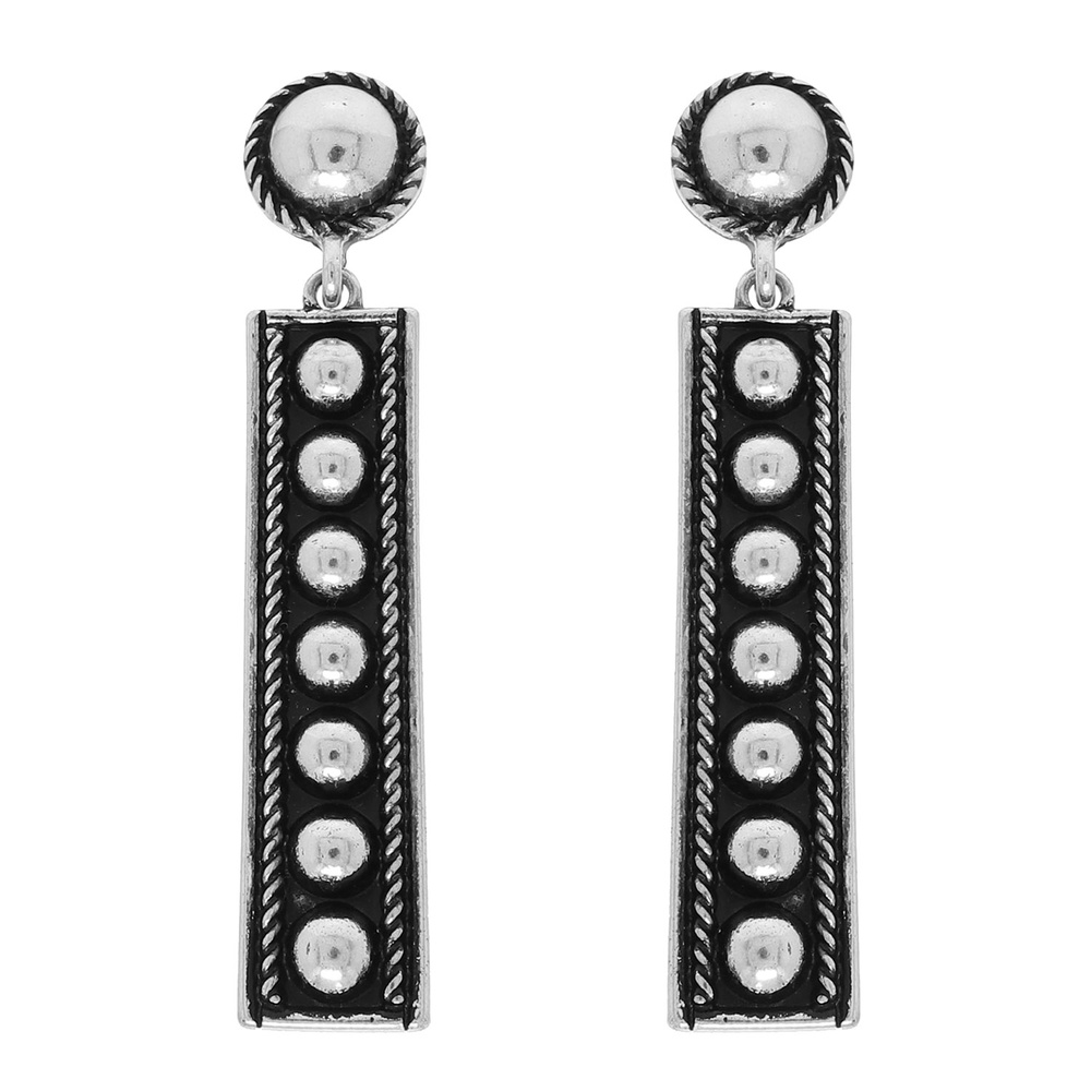 RIGIDIZED BUBBLE VERTICAL BAR POST EARRINGS IN OXIDIZED SILVER-TONE METAL
