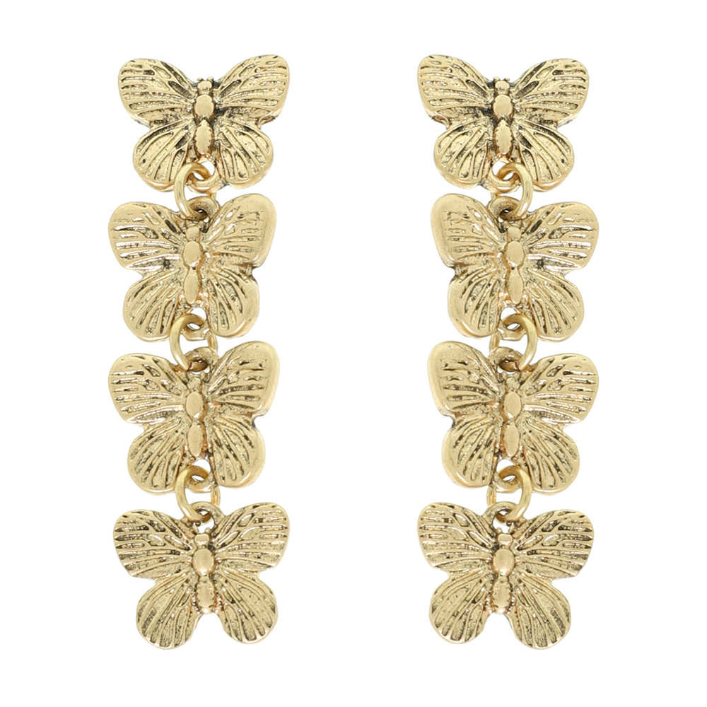Textured Butterfly Charm Linear Earrings