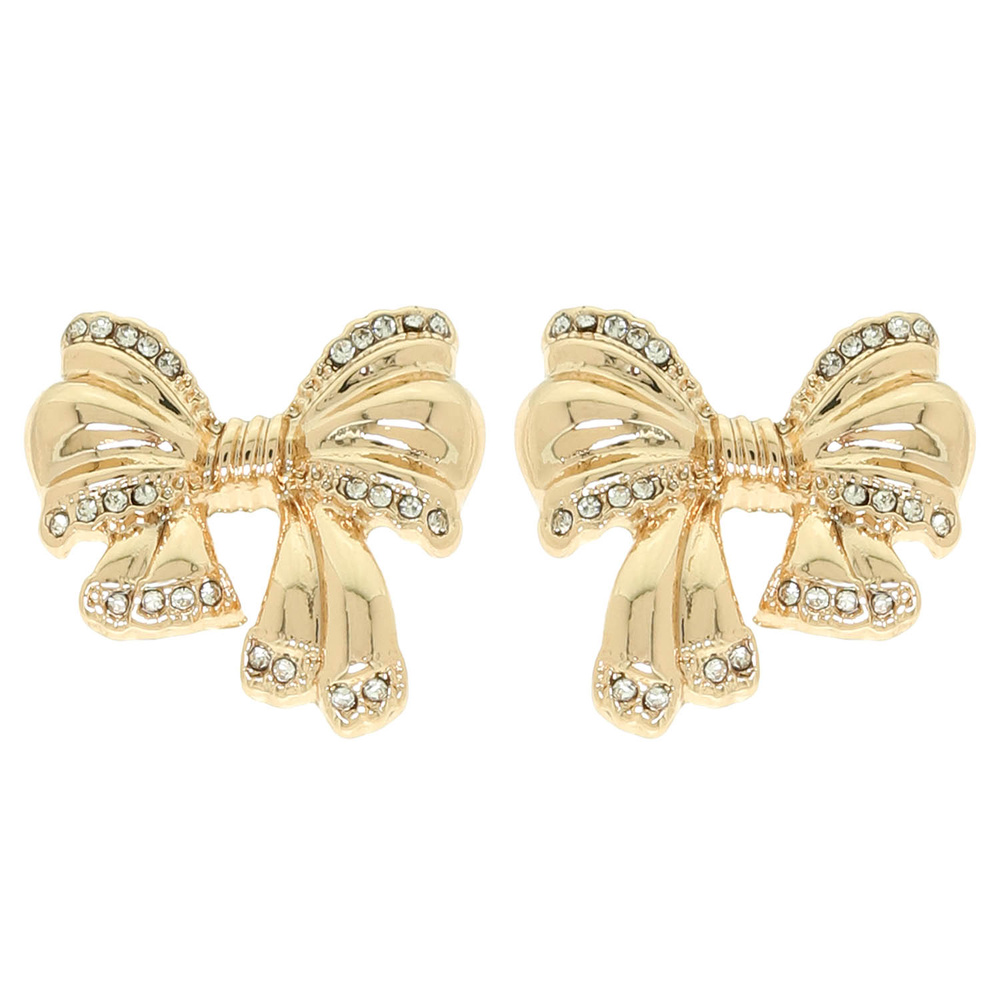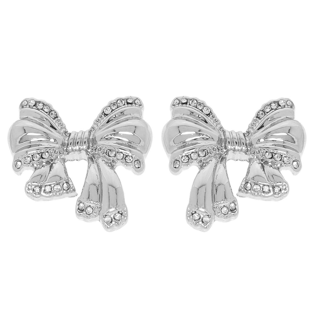 POLISHED RHINESTONE PAVED TEXTURED BOW POST EARRINGS