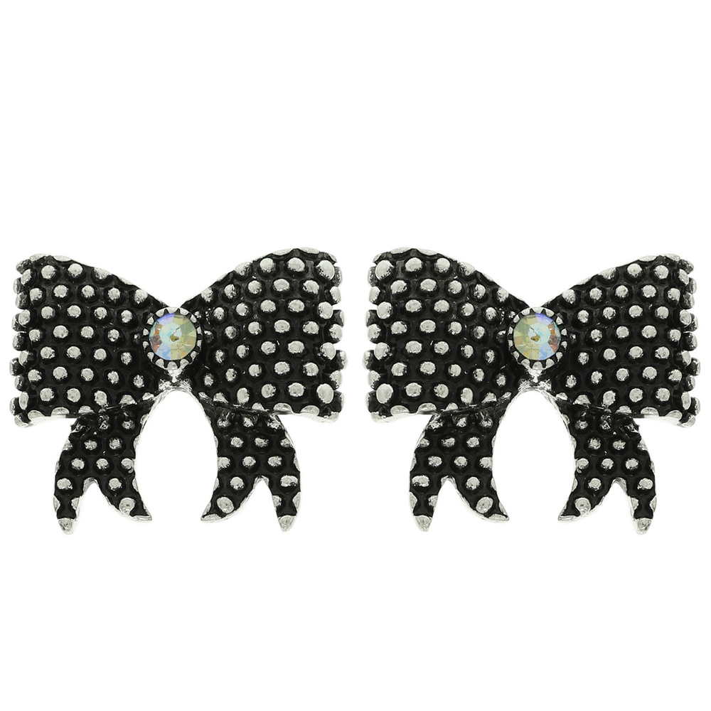 BUBBLE PATTERN BEZEL-SET CRYSTAL BOW CONCHO POST EARRINGS