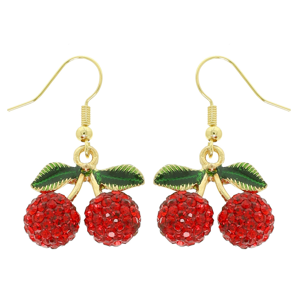 RED CRYSTAL RHINESTONE PAVE CHERRY DROP EARRINGS