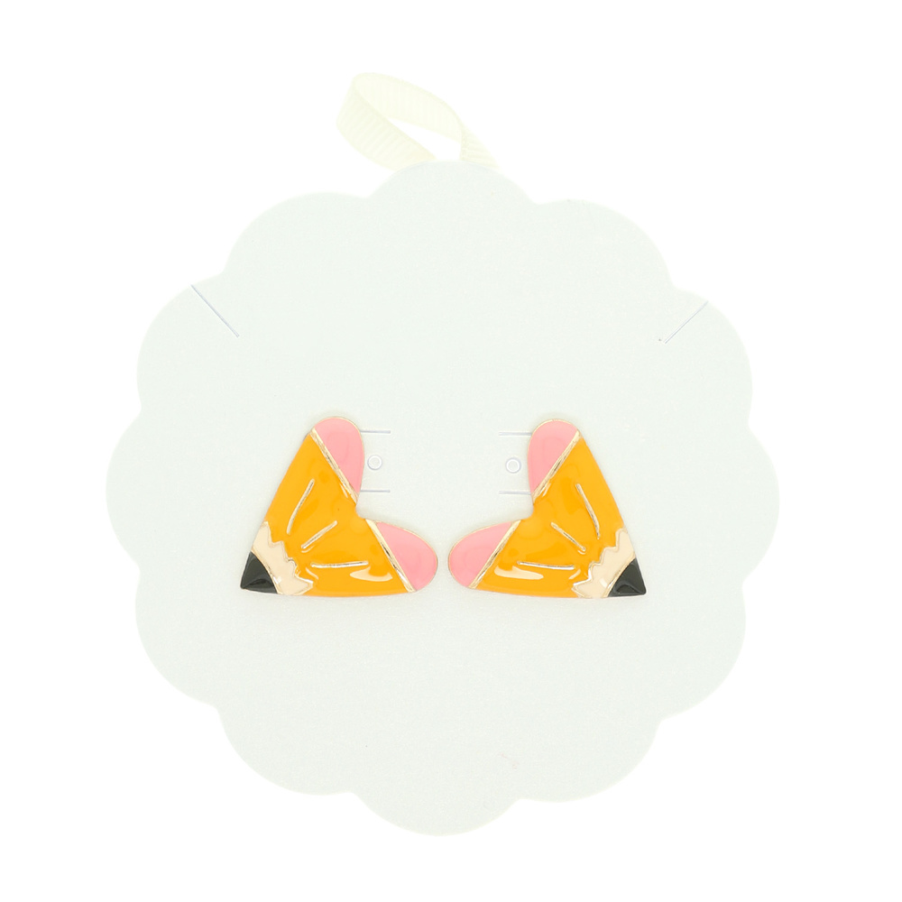HEART SHAPED PENCIL DESIGN STUD EARRINGS WITH ENAMEL AND GOLD TONE METAL