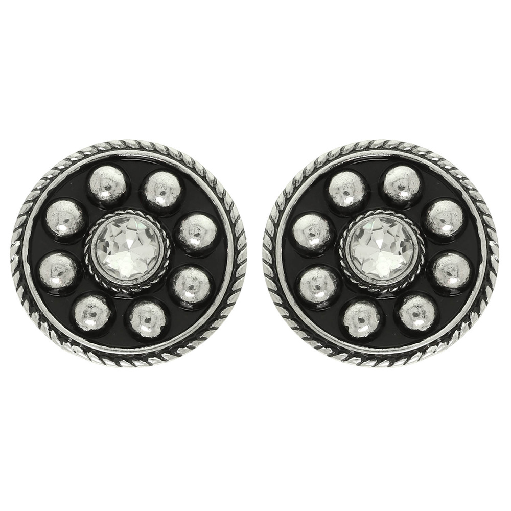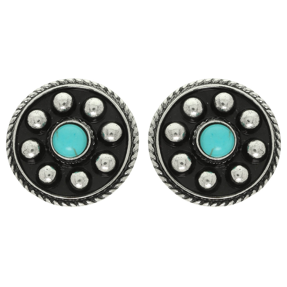 WESTERN CONCHO STUD EARRINGS WITH CENTER TURQUOISE IN OXIDIZED SILVER TONE METAL SETTING