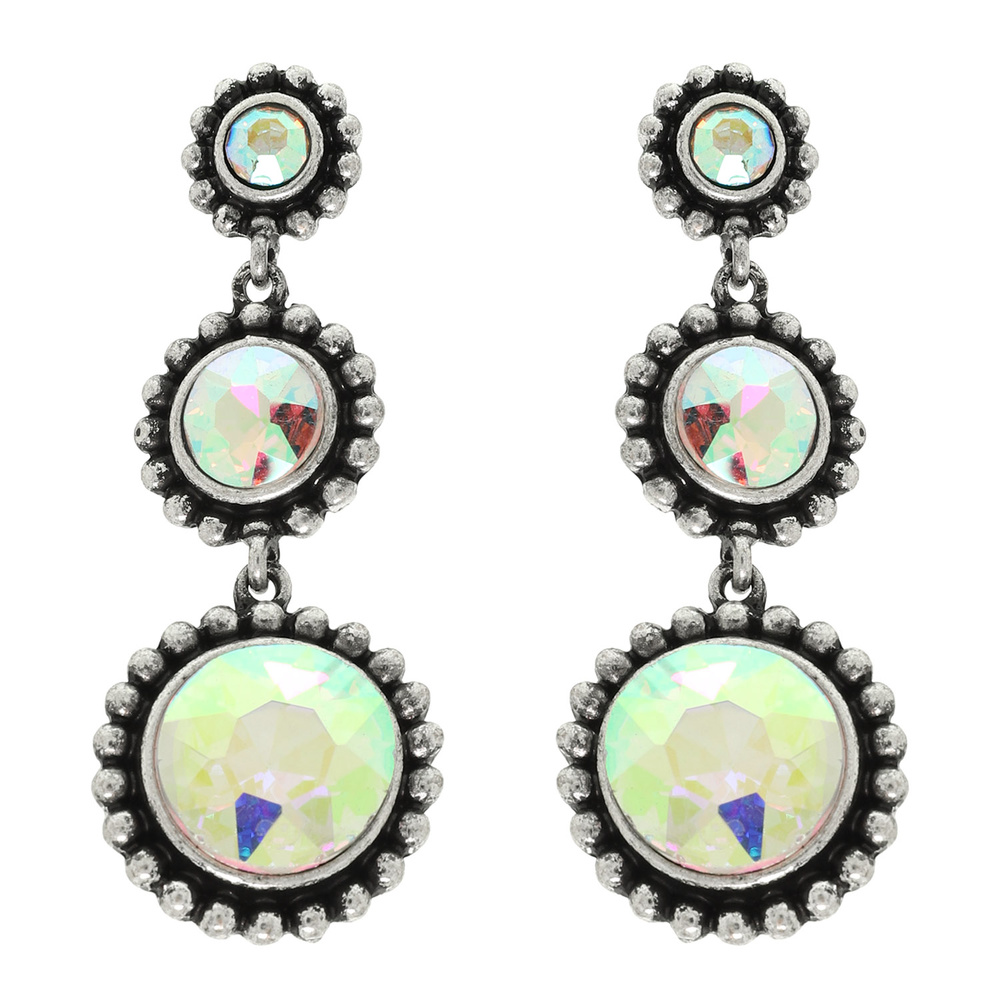 WESTERN MULTI TIERED ROUND CRYSTAL POST DANGLE EARRINGS