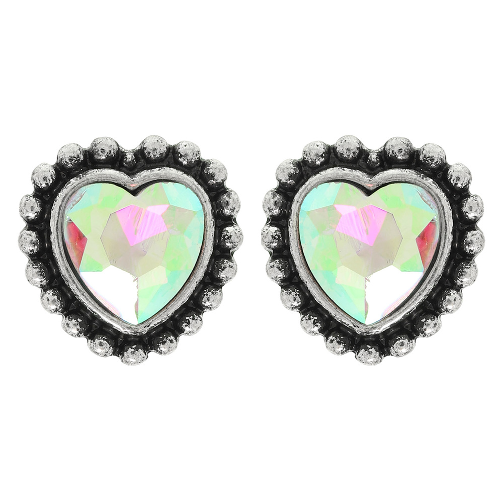 WESTERN CRYSTAL HEART POST EARRINGS WITH BEADED EDGE DETAIL