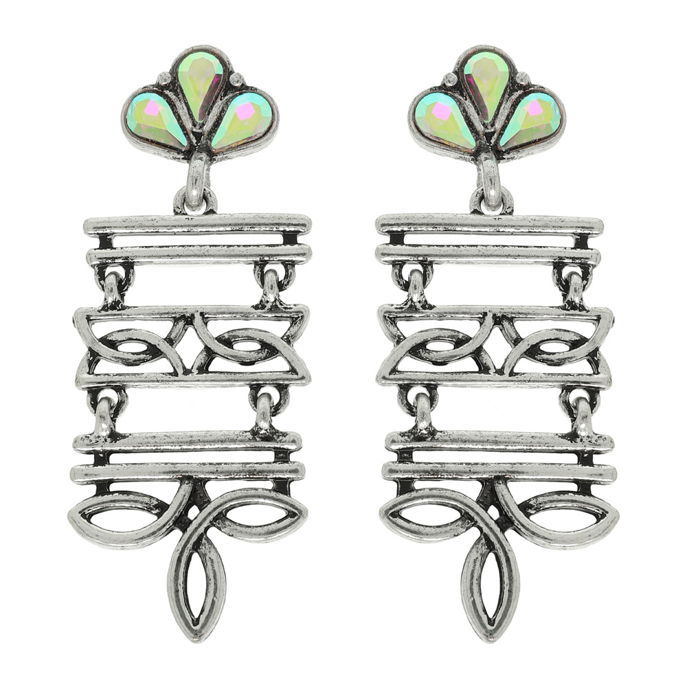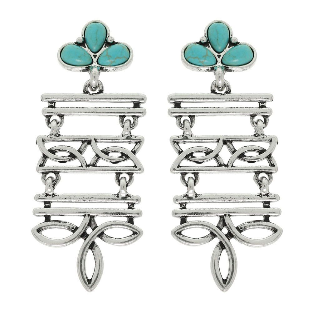 WESTERN BOOT STITCH RECTANGLE DANGLE EARRINGS WITH TURQUOISE ACCENT