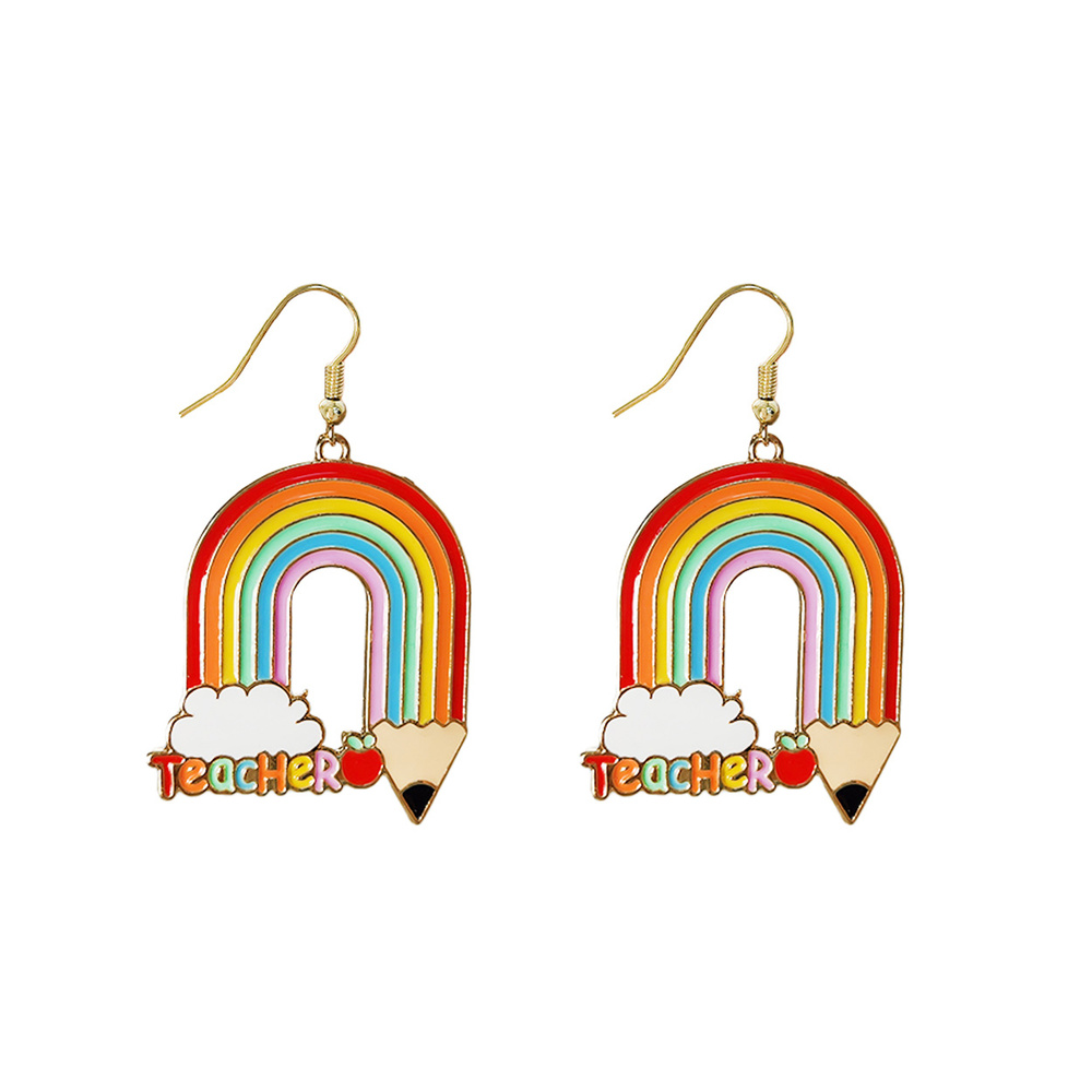 TEACHER PENCIL SHAPED RAINBOW EARRINGS WITH COLORFUL ENAMEL DETAIL