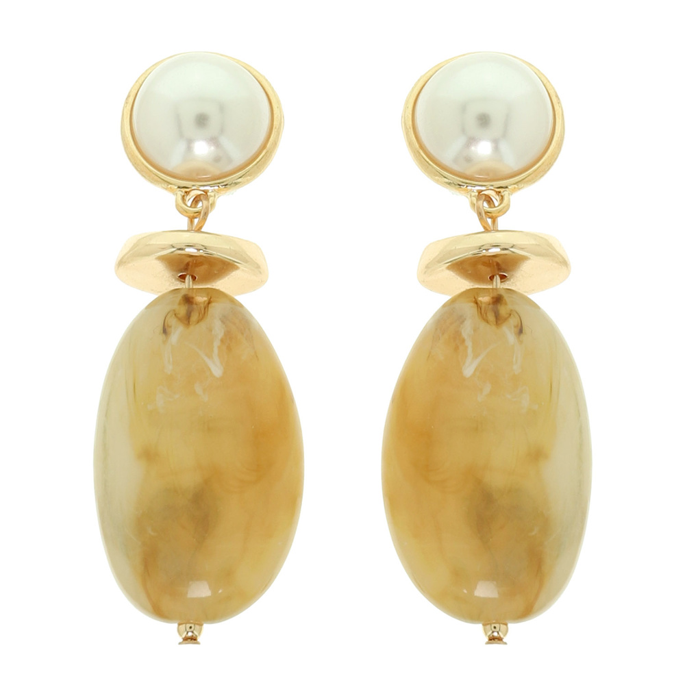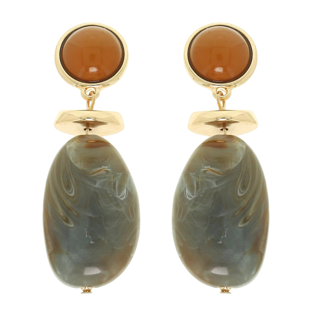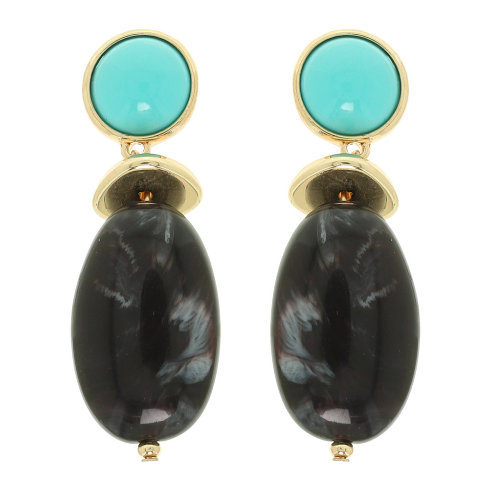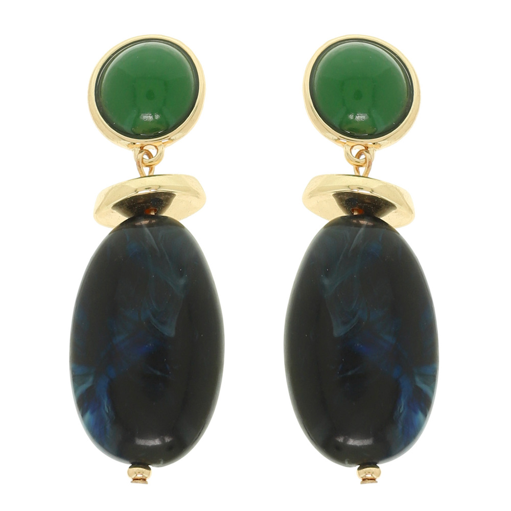 OVAL POST EARRINGS WITH MULTI GEMSTONE DESIGN AND GOLD TONE METAL ACCENTS