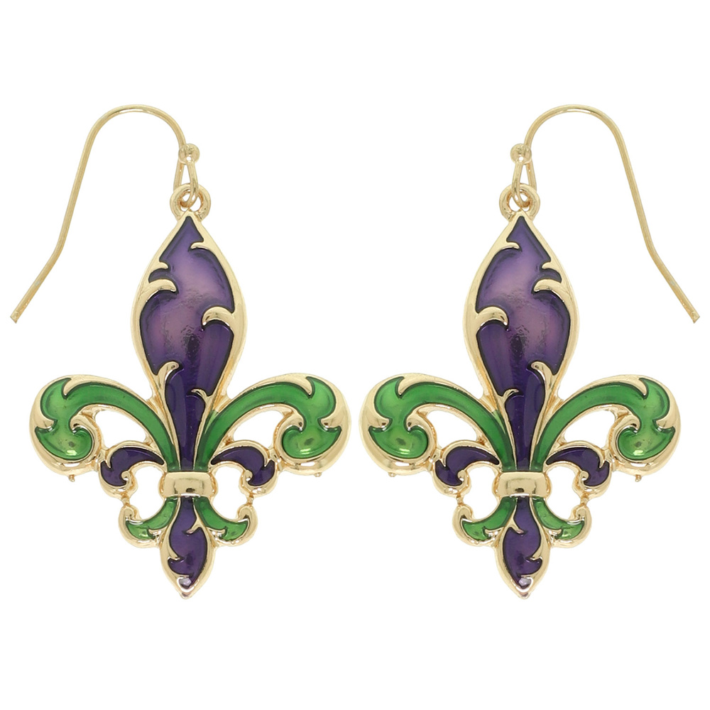 MARDI GRAS FLEUR DE LIS ENAMEL DANGLE EARRINGS