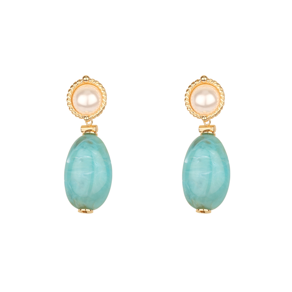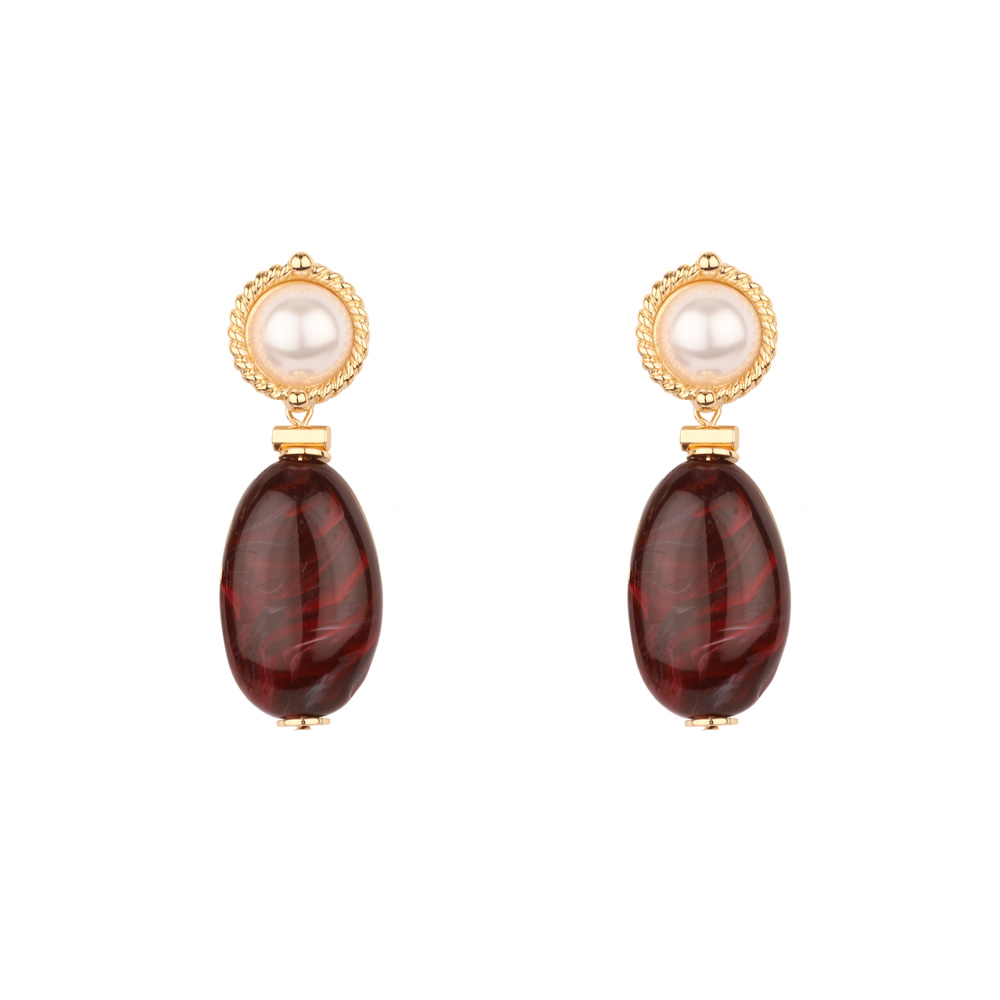 ACRYLIC MARBLE OVAL POST DANGLE EARRINGS WITH PEARL STUDS