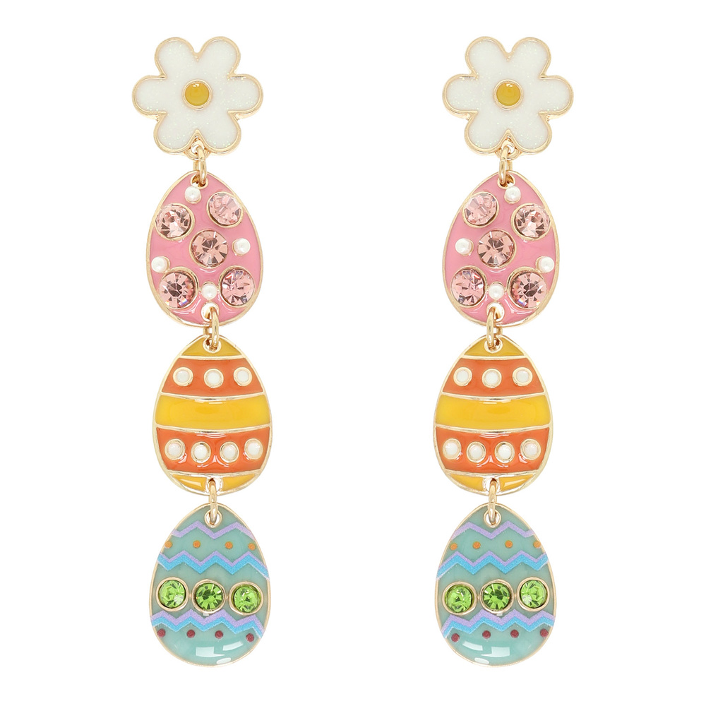 PASTEL EASTER EGG LINEAR EARRINGS WITH FLORAL STUD AND CRYSTAL ACCENTS