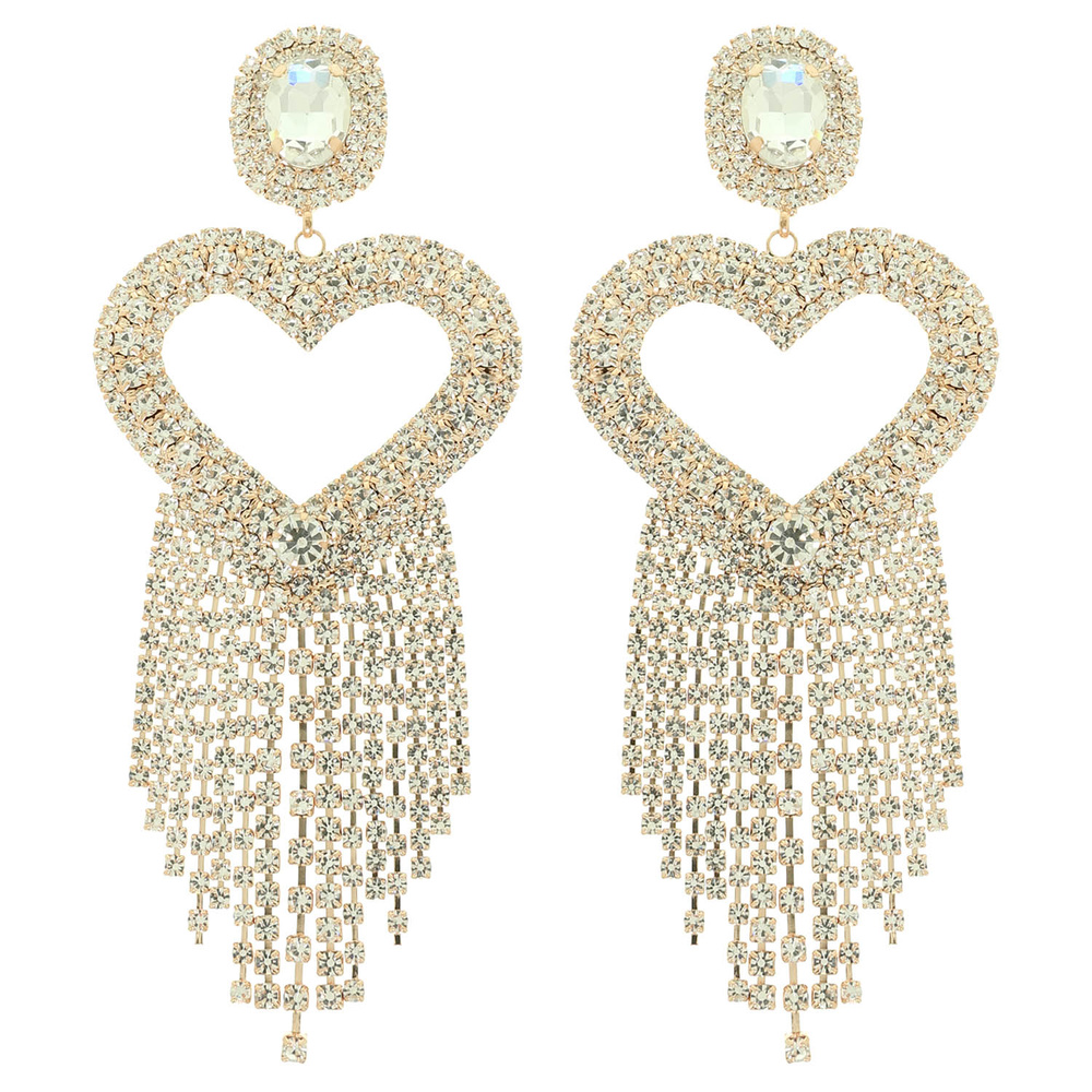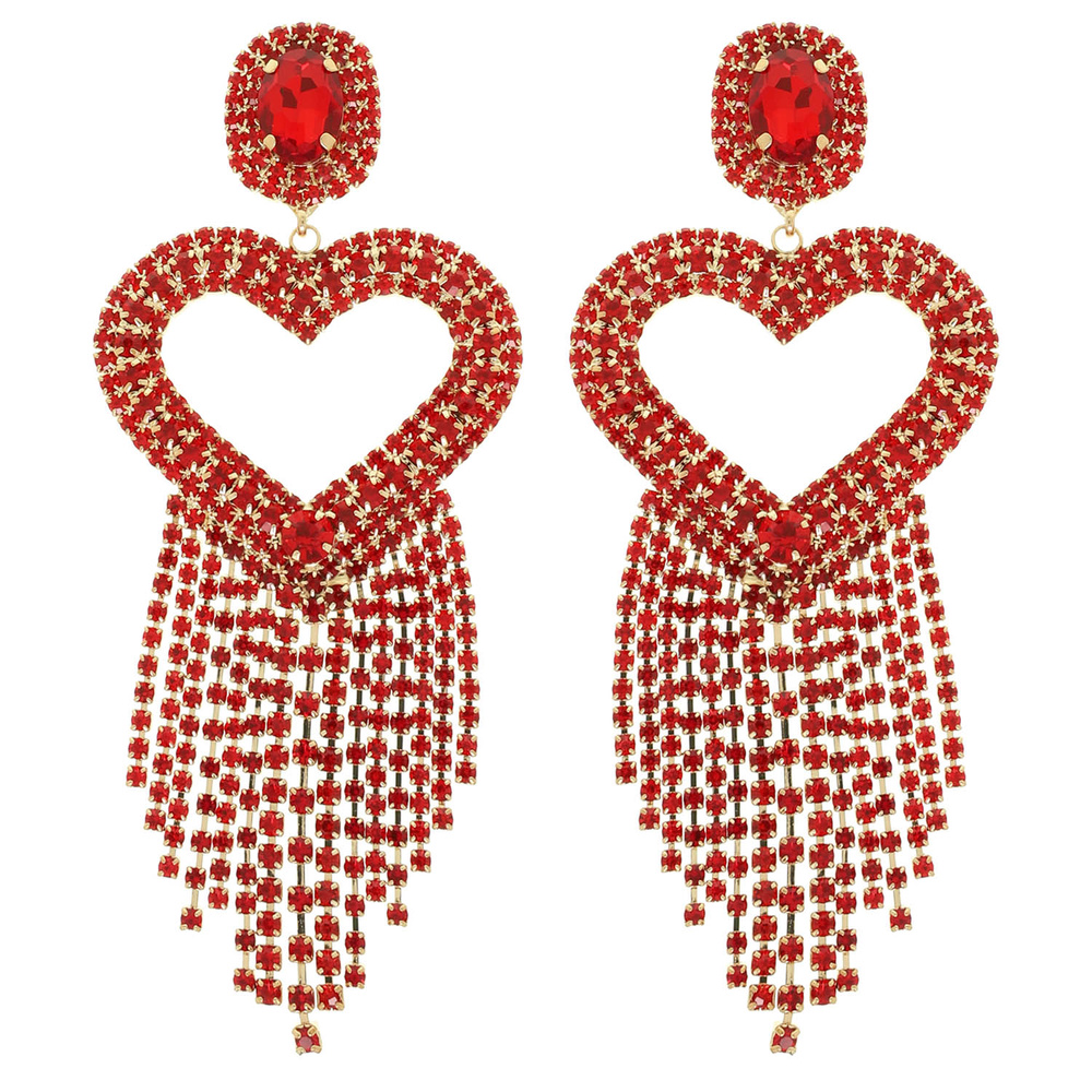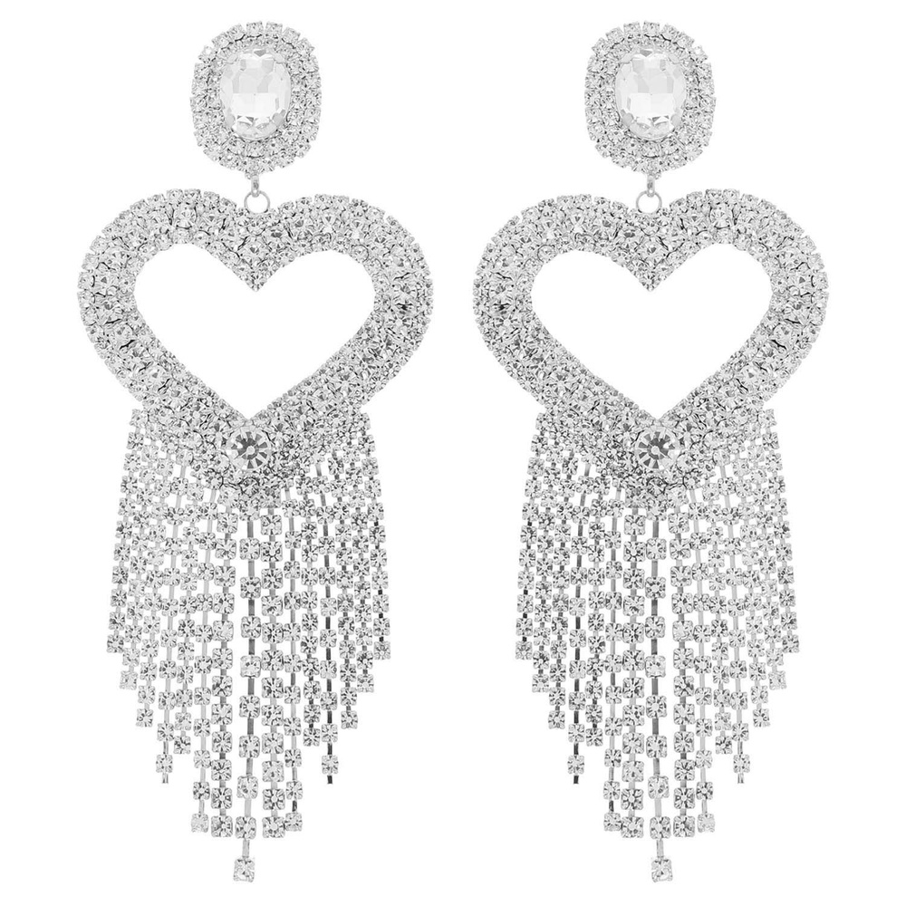 ENVELOPE HEART POST DANGLE EARRINGS WITH RHINESTONE TASSEL AND CRYSTAL STUD