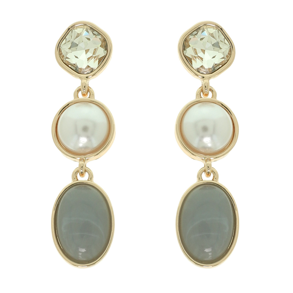 MULTICOLOR CABOCHON DROP EARRINGS WITH CRYSTAL STUD AVAILABLE IN MULTIPLE COLORS