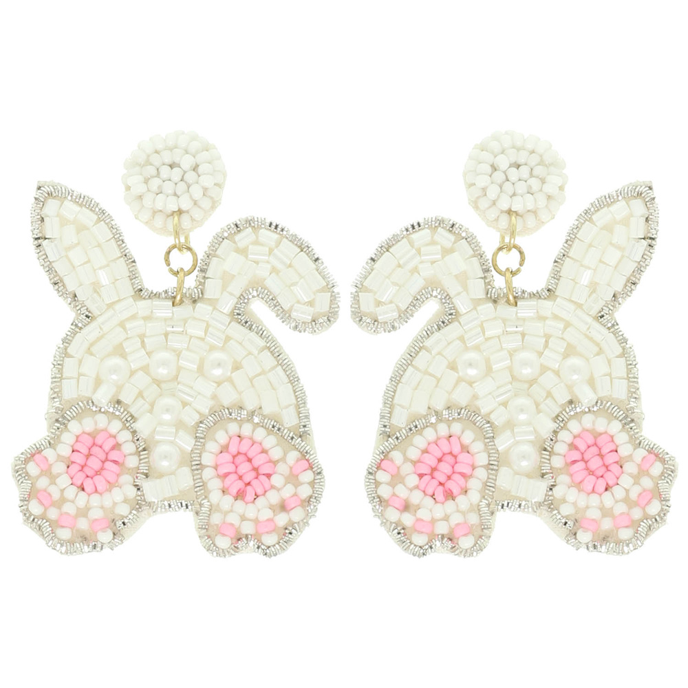 EASTER BUNNY DROP EARRINGS WITH SEED BEADED DETAIL AND PEARL ACCENTS