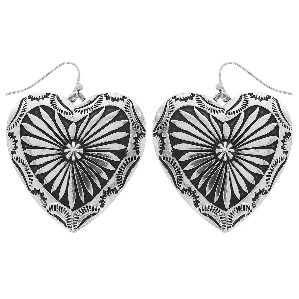 WESTERN FLORAL ETCHED HEART DANGLE EARRINGS