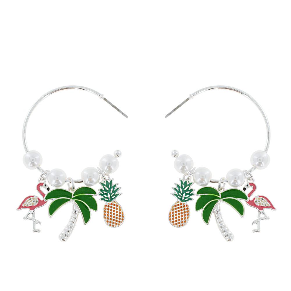 Tropical Dangling Charm W/pearl Hoop Er - Mix